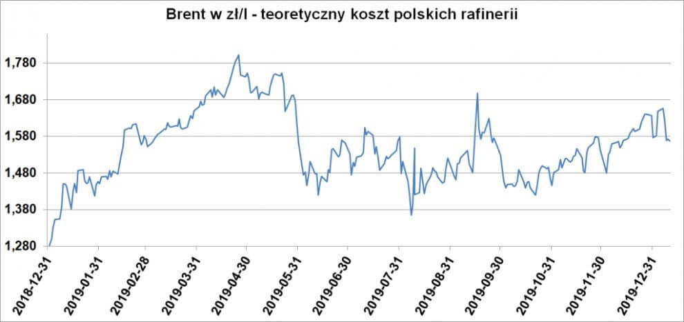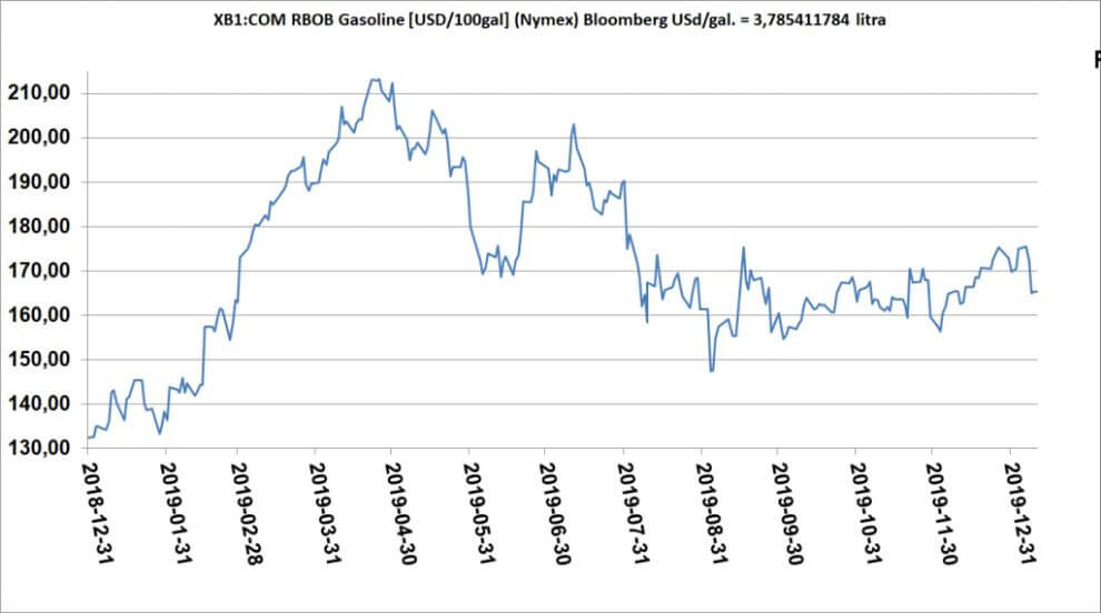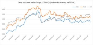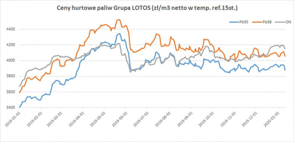 I od 5 grudnia 2019 r. w Lotosie Pb95: +24 zł/m3; Pb95 +2 zł/m3; ON/I Z-40 +111 zł/m3; ONG +80 zł/m3 [SPOT +3/+14].