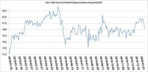 w Orlenie Pb95 +12 zł/m3; Pb98 +19 zł/m3; ON/A2 -34 zł/m3; ONG -11 zł/m3 – [SPOT 4,83 (+1) / 5,09 (-4)];
