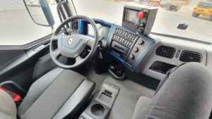 D Wide miał zabudowę Terberg Olympus o pojemności 21 m3 z odwłokiem wykonanym ze stali Hardox 400. Krótka kabina kierowcy z 3 miejscami i dodatkowym oknem w dolnej części drzwi pasażera zapewnia bardzo dobre warunki. Pneumatycznie zawieszony fotel kierowcy oraz kierownica mają szeroki zakres regulacji. Widoczność jest dobra. Schowki nad szybą, a także drobne półki i skrytki wystarczą na drobiazgi. Wnętrze urozmaicają niebieskie, „neonowe” akcenty.