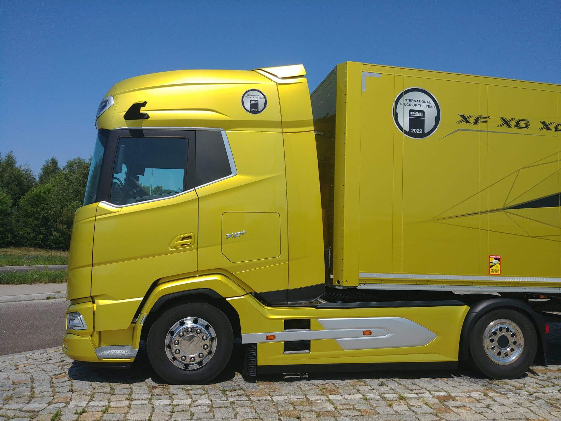 Przypomnijmy: DAF wprowadzając nową gamę swoich pojazdów długodystansowych (na którą składają się XF, XG i właśnie XG+), jako pierwszy producent sięgnął po nowe przepisy europejskie, pozwalające na wydłużenie pojazdów. W dużym skrócie i uproszczeniu: producent opracowując nowy pojazd może przekroczyć długość zestawu aż o 90 cm, o ile przełoży się to na wzrost bezpieczeństwa i poprawę efektywności paliwowej. W praktyce skośny przód pojazdu musi zmieścić się w trapezowym wzorcu, wyznaczonym przez legislatora. Jednak wydłużony nos i duży skos przedniej części pojazdu niesie ryzyko zmniejszenia wygody manewrowania oraz utrudnionej widoczności. Dlatego podczas projektowania nowej gamy, DAF przeprowadził szereg prób, sprawdzając, jakie wydłużenie pojazdu i pochylenie ściany przedniej zapewni najlepszy kompromis pomiędzy zmniejszeniem oporów powietrza bez negatywnych konsekwencji dla widoczności i manewrowości.