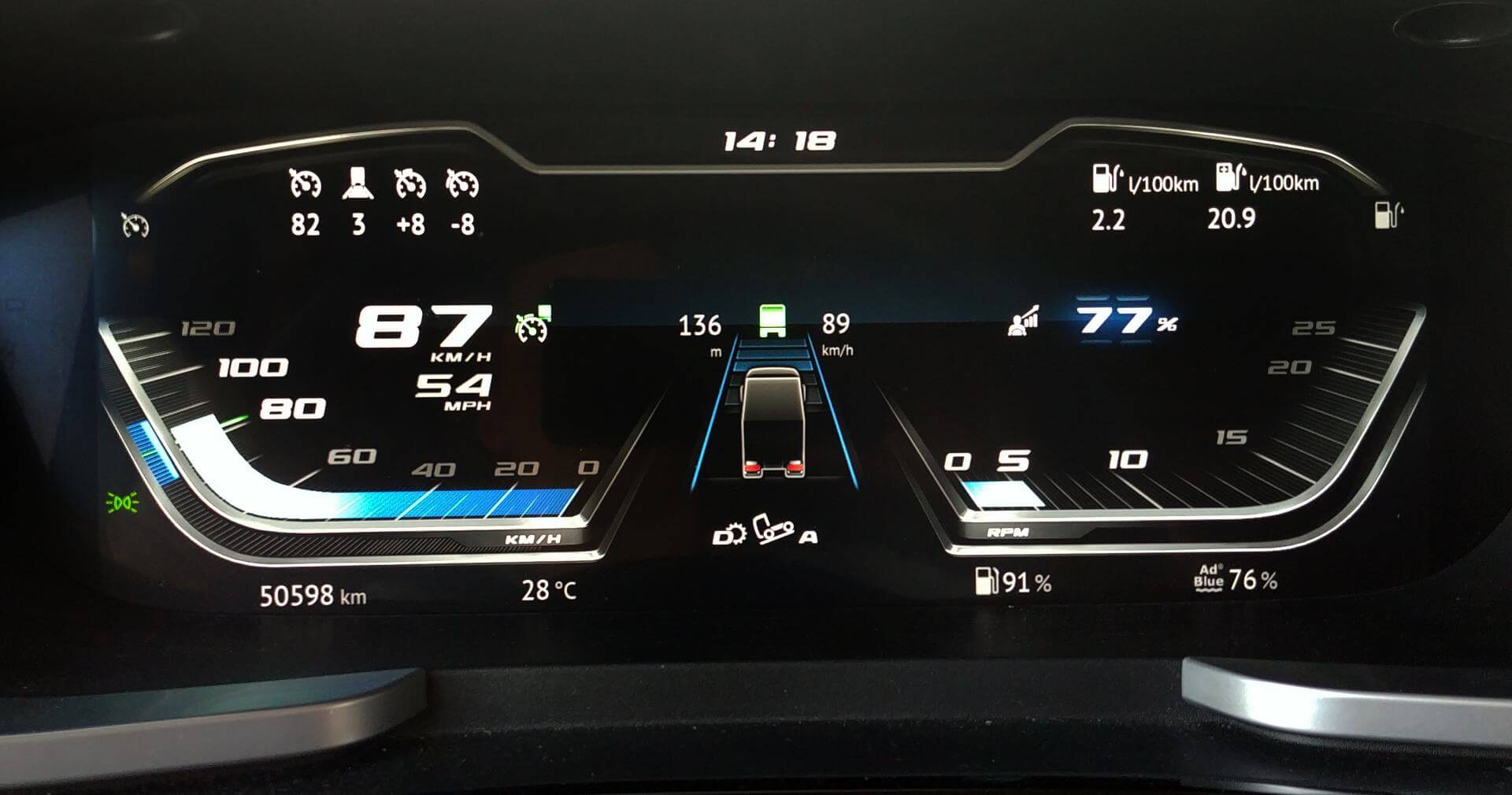 Elektroniczny, 12-calowy zestaw wskaźników pozwala na dużą swobodę wyboru prezentowanych parametrów jazdy. Ilość dostarczanych informacji można zmniejszać w czterech stopniach, aż do ultra minimalistycznej wersji nocnej. „Legendarny” sygnał ostrzegawczy (tidin-tidin) został zastąpiony zróżnicowanymi i milszymi dla ucha powiadomieniami.