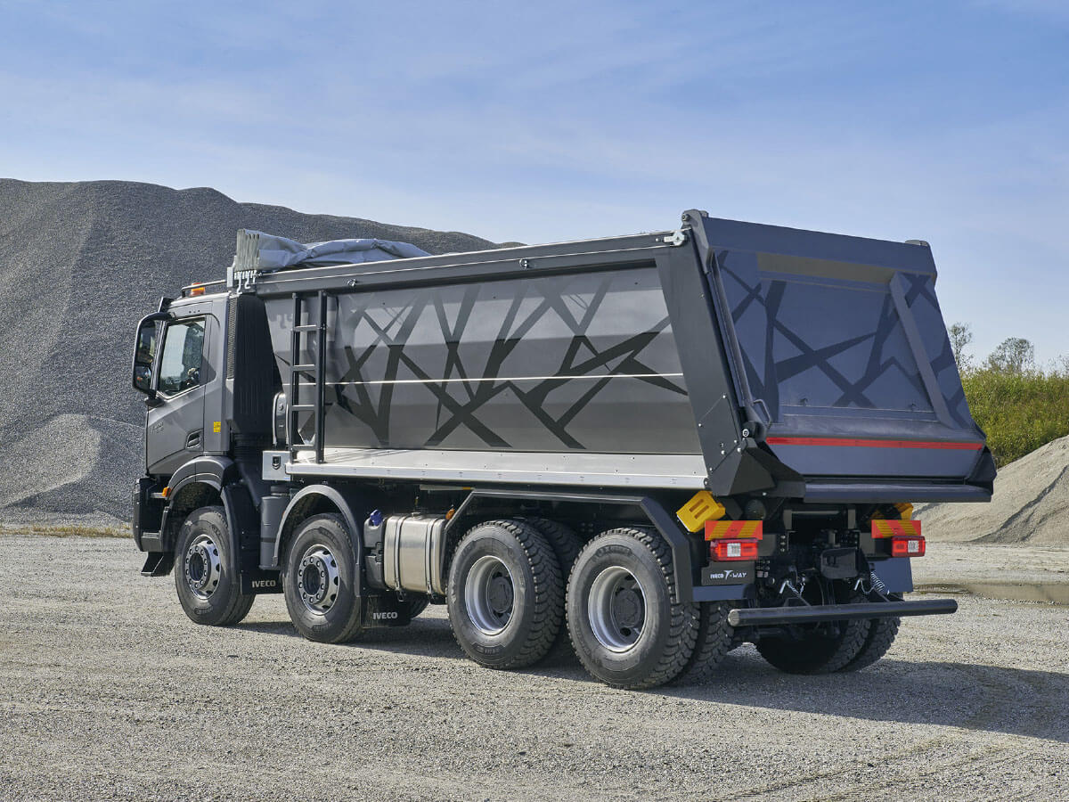 IVECO najwyraźniej zamierza umocnić się w najpopularniejszych typach przewozów budowlanych, gdzie liczy się przede wszystkim ładowność. Kolejna nowość również skutkuje obniżeniem masy własnej ciężarówki. W modelu T-WAY wprowadzono nowy wózek tylnych osi, którego korpus jest odlewany jako pojedynczy element. Firma podaje, że dzięki niemu waga pojazdu T-WAY spada o 325 kg w porównaniu z Trakkerem.