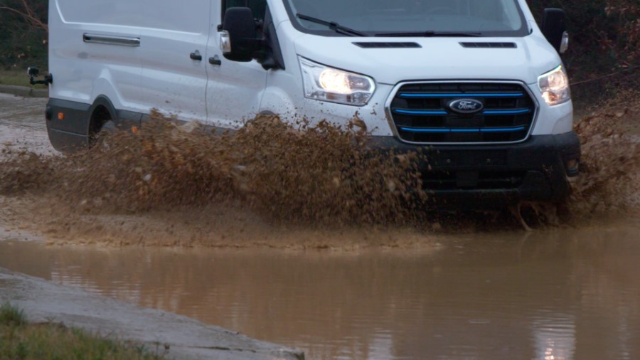 Podczas testów, elektryczny E‑Transit zmierzył się z zimową aurą w Michigan w USA, symulacjami ekstremalnych upałów, mrozów i wysokości w należącej do Forda komorze testów środowiskowych w Kolonii w Niemczech oraz z wyboistym torem i nierówną nawierzchnią na firmowym poligonie Lommel w Belgii.