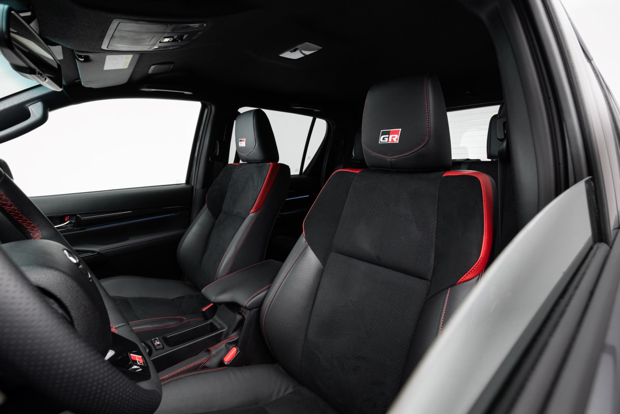 Wyposażenie wersji GR Sport plasuje ją na szczycie gamy Hiluxa. Samochód ma m.in. system Premium Audio JBL z 9 głośnikami i subwooferem, podgrzewane fotele przednie i tylne, monitor panoramiczny z systemem kamer 360 stopni (Panoramic View Monitor), a także nawigację satelitarną Toyota Touch 2 w języku polskim z 3-letnią darmową aktualizacją map i kolorowym, 8-calowym ekranem dotykowym. Łączność ze smartfonem możliwa jest przy pomocy interfejsów Android Auto i Apple CarPlay.