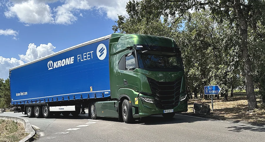 Test przeprowadzony przez francuskich dziennikarzy Fabien Calvet (www.truckstop.fr) oraz Loïc Fieux (Les Routiers) odbył się na trasie pomiędzy granicą Belgii a Hiszpanii, w warunkach w pełni odzwierciedlających codzienną eksploatację. Zestaw testowy obejmował załadowaną naczepę kurtynową Krone i ważył około 30 ton,