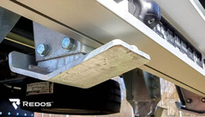 Kolejnym przykładem jest stworzenie sytemu dokowania wózka widłowego wewnątrz zabudowy, który pozwala wykonać całą operację w czasie krótszym niż 5 minut, co jest bardzo dobrym wynikiem. To rozwiązanie także narodziło się przy współpracy z jednym z bardzo ważnych klientów, co dowodzi, że projektują i produkują zindywidualizowane rozwiązania odpowiadające wspomnianym potrzebom. Inny przykład to wprowadzone w przyczepach tylne wsporniki antyuderzeniowe. Wielu kierowców boryka się z uszkodzeniami zderzaków przy pokonywaniu nierówności czy w momencie, gdy zahaczą o coś leżącego na drodze, dlatego Redos stworzył specjalne płozy w kształcie litery L, które doskonale chronią zderzak.