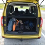 Do bagażnika prowadzi klapa. Jest duża i dość ciężka. W tym przypadku trzeba też zapewnić sobie sporo miejsca z tyłu, żeby w ogóle ją otworzyć. W środku do wykorzystania jest ponad 500 l do linii okien. Bagaże osłania sztywna półka, dzielona, co znacznie ułatwia korzystanie z niej. W środku jest ledowa lampka i dwa haczyki na torby. W podłodze umieszczono 4 uchwyty do mocowania ładunków. Bagaż można też zabezpieczyć siatką zamontowaną za pierwszym bądź drugim rzędem siedzeń. Po złożeniu foteli tylnego rzędu uzyskujemy prawie płaską podłogę, a do wykorzystania jest 2390 l po dach. Miejsce na trójkąt ostrzegawczy wygospodarowano w bocznej ścianie, a koło zapasowe umieszczono pod podłogą. Citan może ciągnąć przyczepę o masie całkowitej wynoszącej