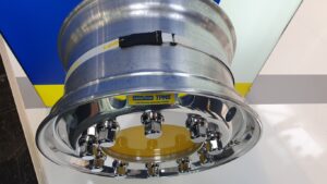 Oczywiście mamy w ofercie typowy TPMS. Warto jednak zaznaczyć, że to narządzie jest bardzo pomocne z uwagi na informatyczne wsparcie. Mamy w zanadrzu całą moc obliczeniową i powiązane z tym algorytmy, co znacznie usprawnia zarządzanie flotą pojazdów. Sam system nie jest nowością, ale nowy jest sposób montażu czujnika ciśnienia i temperatury na feldze. Plusem tego rozwiązania jest możliwość mierzenia temperatury, co umożliwia algorytmom przeliczeniowym generowanie informacji o aktualnym stanie opony. TPMS pozwala nam przewidzieć, co wydarzy się z oponą i zapobiec ewentualnej awarii w drodze, co w połączeniu z serwisem TruckForce dostępnym 24/7 zapewnia pełną obsługę, przechodząc od reaktywnego sposobu zarządzania oponą do proaktywnej i inteligentnej obsługi.