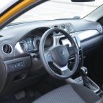 We wnętrzu największa zmiana to dźwignia zmiany biegów – tutaj mamy zautomatyzowaną, 6-stopniową skrzynię. Vitara z pełną hybrydą dłużej się rozpędza do setki i ma niższą prędkość maksymalną od swojej „miękkiej” odpowiedniczki.