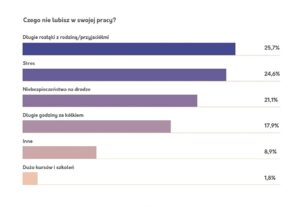 Na to jak kierowcy realizują swoje zadania i z jakim zaangażowaniem je wykonują duży wpływ ma to, czy w miejscu pracy czują się oni komfortowo i bezpiecznie. 24,6% badanych kierowców deklarowało, iż praca niesie ze sobą wiele powodów do stresu, a 21,1% także niebezpieczeństw na drodze. Niezwykle ważne jest również poczucie przynależności do firmy i bycia docenianym, dzięki czemu kierowca nie myśli o odejściu z pracy. 38% badanych kierowców myśli o zmianie zawodu bardzo często lub często, o 12% mniej niż w poprzednim raporcie. Ma na to jednak wpływ wysokość zarobków, ponieważ dla wspomnianej grupy mediana netto wynosi 6 725 tys. zł. Przy wyższej kwocie natomiast kierowcy już nie chcą zmieniać pracy.