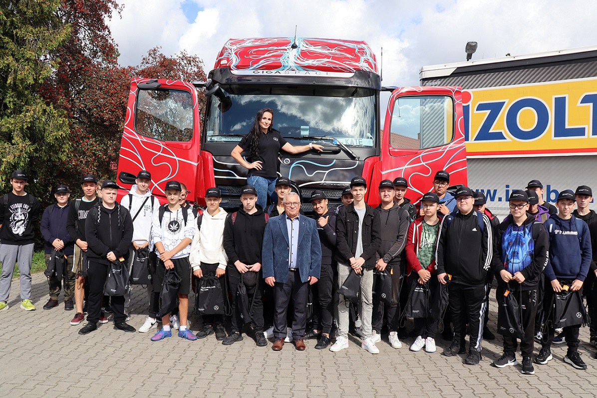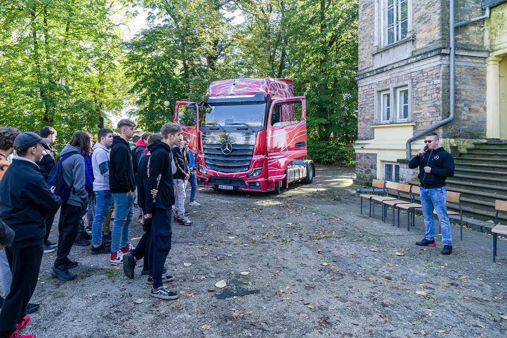 Kate TruckDriverka, czyli Kasia Żółtek, Adrian Trucker Paker, czyli Adrian Poździej, oraz ArtDrive, czyli Artur Szymański znani są już doskonale kierowcom, m.in. z takich wydarzeń jak Master Truck Show, na którym dwukrotnie już prezentowali Actrosa odwiedzającym stoisko Mercedes-Benz Trucks Polska, oraz z licznych spotkań trakerskich w całej Polsce. Tym razem odwiedzali młodych ludzi, którzy dopiero uczą się tego trudnego i odpowiedzialnego zawodu. Dzięki akcji uczniowie mieli okazję porozmawiać w nieformalnej atmosferze z profesjonalistami, dla których praca w trasie jest codziennością i osobiście zapozanć się z Actrosem L.